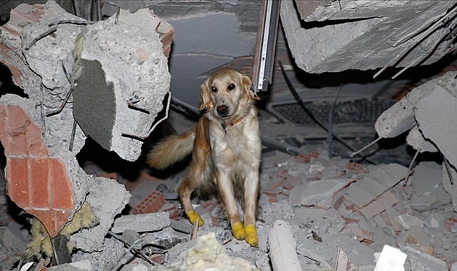 Patileri enkazda zarar gören "Köpük" yarasına aldırmadan kurtarma çalışmalarına destek veriyor