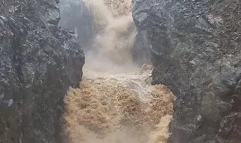 Sağanak yağış sonrası şelale coştu