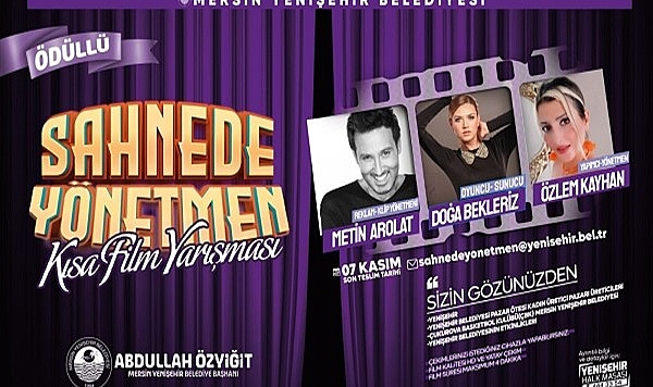 “Sahnede Yönetmen Kısa Film Yarışması’’ başvuruları başladı Haziran ayında düzenlediği “Sahnede Yönetmen Semineri” ile film ve televizyon programı yönetimi, filmlerin yapım süreci, canlı yayınlar, kamera önü ve kamera arkasına dair katılımcılara bilgiler veren Mersin Yenişehir Belediyesi, “Sahnede Yönetmen Kısa Film Yarışması” ile yönetmen gözünden Yenişehir’i film sahnesine taşıyacak.