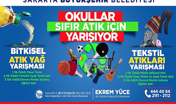 Sakarya Büyükşehir Belediyesi ve İl Milli Eğitim Müdürlüğü iş birliğiyle düzenlenen Bitkisel Atık Yağ ve Tekstil Atıkları toplama yarışmalarında yeni dönem başlıyor. Öğrencilerde sıfır atık farkındalığı oluşması, yetişen yeni neslin bitkisel atık yağ ve tekstil atıkları toplama bilinci kazanması ve atıkların çevreye ve insanlara vereceği zararların önüne geçilmesinin hedeflendiği yarışmalar için başvurular alınmaya başlandı.Yarışmalara Sakarya’da bulunan anaokulu, ilköğretim ve ortaöğretim okulları katılabilecek. Bitkisel Atık Yağ ve Tekstil Atıkları toplama yarışmaları 26 Mayıs 2023 tarihine kadar devam edecek. Ödül töreni ise 7 Haziran 2023 tarihinde gerçekleştirilecek. İklim Değişikliği ve Sıfır Atık Dairesi Başkanlığından yapılan açıklamada, gelecek nesillerde sıfır atık bilinci oluşmasının önemine vurgu yapılarak, “Şehrimizde bulunan tüm anaokulu, ilköğretim ve ortaöğretim okullarımızı yarışmalara katılmaya davet ediyoruz. Büyükşehir Belediyesi olarak sıfır atık bilincine sahip nesiller yetiştirmek için çalışmaya, insan ve çevre sağlığını korumaya devam edeceğiz” denildi.
