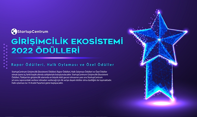 StartupCentrum Girişimcilik Ekosistemi 2022 Ödülleri; Rapor Ödülleri, Halk Oylaması Ödülleri ve Özel Ödüller olmak üzere üç farklı kategoride değerlendirilecek ve çok çeşitli ekosistem oyuncularına ödülleri takdim edilecektir.Rapor ödülleri kapsamında, yılın en aktif yatırımcıları, ‘’StarupCentrum 2022 Türkiye Ekosistemi Yıl Sonu Raporu’’ verilerine göre ödüllendirilecektir. Rapor ödüllerinin en önemli özelliği ise Türkiye’de ilk defa veriye dayalı verilecek olan ödül olmasıdır. İşte, rapor ödülleri kategorilerinin bazıları; Yılın En Aktif Melek Yatırım Ağı, Yılın En Aktif Venture Capital’ı, Yılın En Aktif Corporate Venture Capital’ı, Yılın En Aktif Melek Yatırımcıları ve daha fazlası!Rapor ödüllerinin yanı sıra özellikle girişimlerin de ödüllendireceği halk oylaması geçtiğimiz hafta yüksek katılımla başladı! Yılın Girişimi, Yılın Blokzincir Girişimi, Yılın Çevre ve İklim Girişimi, Yılın Eğitim Girişimi, Yılın Fintech Girişimi, Yılın Pazaryeri Girişimi, Yılın Sağlık Girişimi, Yılın SaaS Girişimi, Yılın Sosyal Girişimi, Yılın Oyun Girişimi, Yılın Yapay Zeka Girişimi, Yılın Dijital Girişimcilik Medyası, Yılın Girişimcilik/İş Dünyası Dergisi, Yılın Üniversite Girişimclik Kulübü, Yılın Kuluçka Merkezi, Yılın Hızlandırma Programı, Yılın Teknokenti, Yılın Girişimciliği Destekleyen STK’sı, Yılın Paylaşımlı Ofisi, Yılın Girişimciliği En Çok Destekleyen Bankası, Yılın Ticaret Odası, Yılın Kalkınma Ajansı olmak üzere birçok farklı kategoride favoriler belli oluyor! Öne çıkan girişimler, kurum ve kuruluşlar StartupCentrum ödül gecesinde ödülleriyle buluşturulacaktır.Siz de oy kullanarak yılın yıldız isimlerini belirleyebilirsiniz!Oy kullanmak için hemen tıklayınHalk oylaması, 13 Ocak Cuma günü sonlanacaktır.