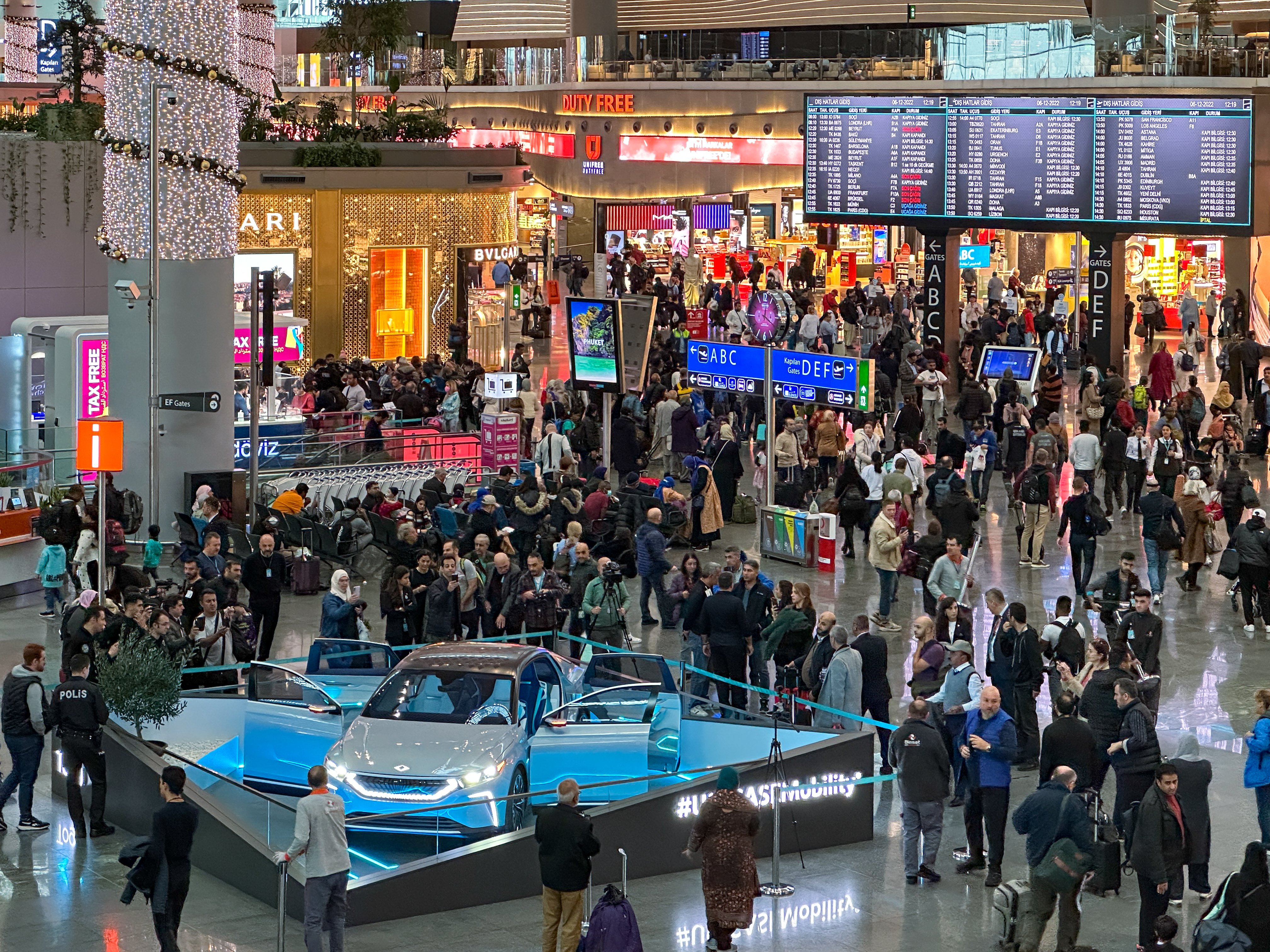 Togg vizyonunu yansıtan ‘Konsept Akıllı Cihaz’ın yeni durağı İGA İstanbul Havalimanı oldu. Togg’un gelecekte yollara çıkaracağı diğer akıllı cihazlarla ilgili önemli ipuçları veren ‘Konsept Akıllı Cihaz’, 5 Aralık itibarıyla Türkiye’nin bir diğer vizyon projesi olan İGA İstanbul Havalimanı’nın Dış Hatlar gidiş salonunda sergilenmeye başladı. Togg’un vizyonuyla benzer şekilde sadece bugünün değil geleceğin ulaşım ihtiyaçlarını karşılamaya yönelik olarak tasarlanan, erişilebilir, sürdürülebilir ve akıllı teknolojileriyle insanı odak noktasına alan İGA İstanbul Havalimanı’nda ziyaretçileriyle buluşacak olan Togg Konsept Akıllı Cihaz, 15 Ocak 2023 tarihine kadar sergilenecek. Bu sergileme ile İGA İstanbul Havalimanı’nı günlük olarak kullanan on binlerce yerli ve yabancı yolcu, Togg vizyonuyla tanışma fırsatı bulacak.