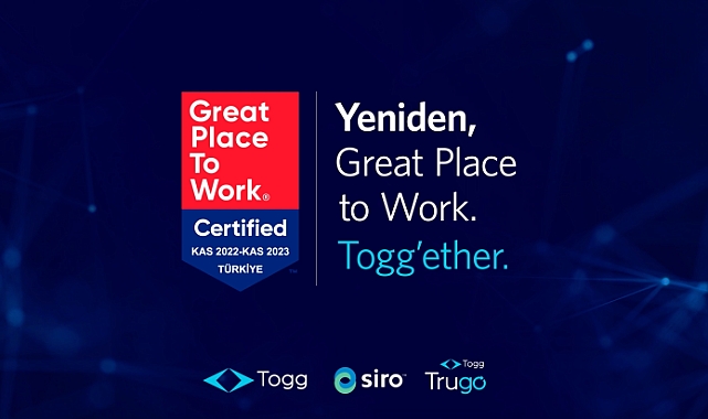 Togg, grup şirketleri Siro ve Trugo birlikte, kurum kültürü konusunda küresel ve bağımsız bir otorite olan Great Place to Work Enstitüsü’nün düzenlediği çalışan deneyimi araştırmasında, kendi çalışanlarının yaptığı değerlendirmeler sonucunda ‘Great Place to Work’ sertifikasını üst üste ikinci kez almaya hak kazandı.