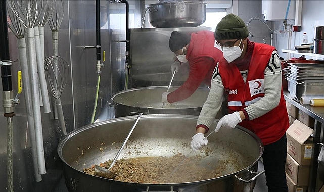 Türk Kızılay, Kahramanmaraş merkezli depremlerin ikincisinin merkez üssü Elbistan'da, depremzedelere ve sahada çalışan görevlilere günlük 100 bin porsiyon sıcak yemek ulaştırıyor.