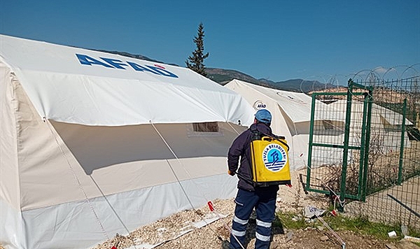 Türkiye, 6 Şubat Pazartesi günü Kahramanmaraş merkezli iki büyük depremle sarsıldı. 7,7 büyüklüğündeki ilk deprem Pazarcık ilçesinde saat 04.17'de meydana geldi. 7,7'lik bu depremin ardından saat 13.24'te bir deprem daha meydana geldi. Merkez üssü Elbistan ilçesi olan depremin büyüklüğü 7,6 olarak kaydedildi. Asrın felaketinde deprem bölgelerinde yaraları sarma çalışmaları devam ediyor.Tuzla Belediyesi ekipleri de depremin yaşandığı ilk andan itibaren Hatay’da çalışmalarını aralıksız sürdürüyor. Tuzla Belediyesi ekipleri, AFAD’ın kurduğu çadır kentte yine AFAD koordinasyonunda dezenfekte ve temizlik çalışmalarını sürdürüyor. Ekipler, çadırların etrafını özel makineler ile tek tek dezenfekte ediyor.
