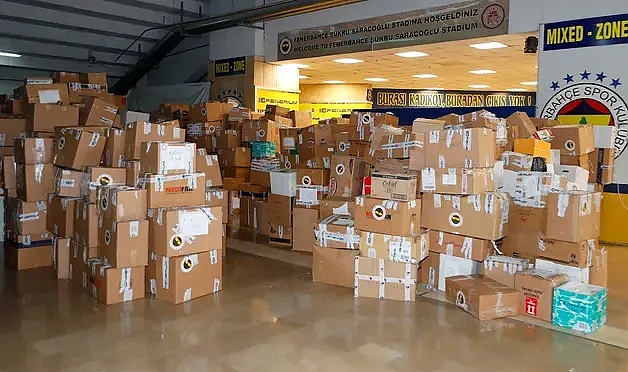 İstanbul'un "Üç Büyükler"i depremzedeler için yardım toplama çalışmalarına ara vermeden devam ediyor.Fenerbahçe Ülker Stadyumu'nda depremzedelere yönelik yardım için yoğun bir çalışma var. Yönetim kurulu üyeleri, stat otoparkına kurulan yardım merkezinde koordinasyonun hızlı ve düzgün şekilde ilerlemesi için hazır bulunuyor.Sarı-lacivertli kulübün bünyesindeki sporcular, gönüllülerle birlikte paketleme yapıp, tırların yüklenmesine yardımcı oluyor. Statta bir tır doldurulurken, boş bir tır da hazır bekliyor ve gönderilen malzemelerin ardından hemen diğer yüklemeye başlanıyor. Doldurulan tırlar, alkışlarla stattan uğurlanarak bölgeye sevk ediliyor.