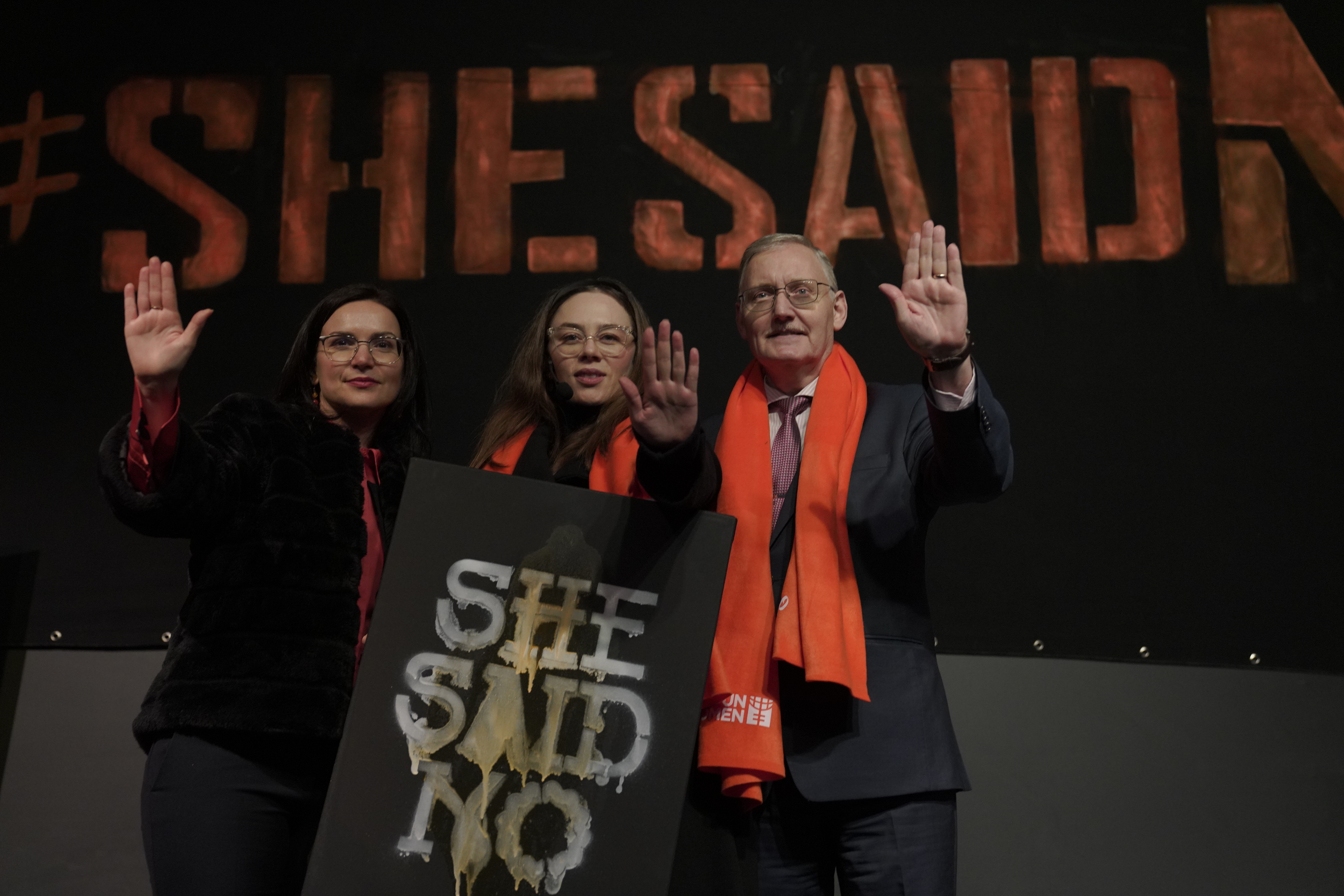 UN Women Türkiye, bu yıl #SheSaidNo kampanyasıyla kadınlara yönelik yakın partner şiddetine dikkat çekiyor. Kampanya, tüm dünyada 25 Kasım – 10 Aralık tarihleri arasında düzenlenen 16 Günlük Aktivizm - Kadınlara Yönelik Şiddete Son Kampanyası kapsamında düzenleniyor. #SheSaidNo kampanyasının lansmanı, 25 Kasım akşamı İstanbul Gazhane’de düzenlenen bir etkinlikle yapıldı. Etkinliğin moderatörlüğünü, UN Women Türkiye İyi niyet Elçisi Demet Evgar yaptı. Avrupa Birliği’nin mali desteği ve İstanbul Büyükşehir Belediyesinin katkılarıyla düzenlenen #SheSaidNo lansmanda sivil toplum, medya, gençler, belediye ve UN Women ortaklarından temsilciler ve ünlüler, kadınlara yönelik şiddete karşı birer dakikalık konuşma yaptılar. Konuşmaların ardından katılımcılar #SheSaidNo stensilleriyle pankart boyadı.Açılışta konuşma yapan