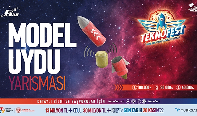 Uzay Macerası Model Uydu Yarışması ile Devam EdiyorTEKNOFEST Havacılık, Uzay ve Teknoloji Festivali kapsamında düzenlenen teknoloji yarışmalarına başvurular hız kesmeden devam ediyor. Başvuru tarihi 20 Kasım’da sona eren ve TÜRKSAT yürütücülüğünde düzenlenen Model Uydu Yarışması öğrencilere, uydu ve uzay projesinin tasarımından göreve başlamasına kadar geçen heyecanlı bir süreci deneyimleme fırsatı sunuyor. Yarışma kapsamında öğrencilerin tasarladıkları model uydu gezegen atmosferinde iniş yapan, sensörlerinden veri toplayan, toplanan verileri bir ara yüz ortamına aktaran, görüntü kaydı yapan ve anlık veri alışverişi yapabilen faydalı yükü temsil ediyor. Adaylardan, telemetri ve iletişim gereksinimleri karşılanarak otonom yapının sağlandığı disiplinler arası çalışan bir sistemi geliştirerek gerçek sistemlerin çeşitli yönlerini yansıtacak şekilde model uydu tasarlamaları isteniyor.Uzay Teknolojileri Alanında İnsan Kaynağı YetişecekMühendislik alanında lisans ve yüksek lisans eğitimi alan öğrencilere teorik bilgiyi pratiğe dönüştürme fırsatı ve disiplinler arası çalışma becerisi edindirmeyi amaçlayan yarışmada birinciye 100 bin TL, ikinciye 80 bin TL, üçüncüye 60 bin TL olmak üzere takımları toplamda 240 bin TL’lik ödül bekliyor. Uzay teknolojilerinin millî olarak üretilmesine katkı sağlayan ve katılımcıların uydunun tüm süreçlerini öğrendikleri yarışma aynı zamanda öğrencilere diğer üniversite takımlarıyla tecrübe paylaşımı; sektörde faaliyet gösteren kurumlar, şirketler, uzmanlar ve mühendisler ile iletişim imkânı sunarken dünyamızın geleceğini şekillendirecek uzay teknolojileri alanında insan kaynağı yetiştirilmesini hedefliyor.Uzun ve detaylı bir hazırlık sürecinden sonra katılımcılar model uydularını ve performanslarını TEKNOFEST Teknoloji Yarışmaları kapsamında Aksaray’da düzenlenecek yarışma alanında sergileyecekler. Cumhuriyetimizin 100. Yılında TEKNOFEST Coşkusu Üçe Katlanıyor… Cumhuriyetimizin 100. yılında İzmir, Ankara ve İstanbul’da düzenlenecek TEKNOFEST coşkusunu üçe katlıyor. Her yıl bir önceki yıla göre daha fazla yarışma kategorisinin açıldığı ve Türkiye tarihinin en büyük ödüllü teknoloji yarışmaları olan TEKNOFEST teknoloji yarışmaları 2023’te 41 ana yarışma 102 alt kategoride düzenleniyor. Festival coşkusunu Türkiye’nin dört bir yanına taşıyan, ayakları yere basmayan tek festival TEKNOFEST’te yarışmalara katılmak için başvurular www.teknofest.org web sitesi üzerinden yapılacak. 13 milyon TL’nin üzerinde ödül, 30 milyon TL’nin üzerinde malzeme desteğinin verileceği TEKNOFEST 2023 teknoloji yarışmaları için son başvuru tarihi 20 Kasım 2022.