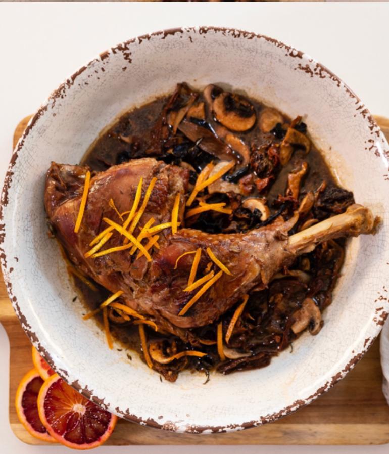 Yapılışı: Baharatları havanda dövüp biraz parçalayın. Tencereye alıp 10 saniye kadar kavurduktan sonra zeytinyağı ekleyin. Soğan ve sarımsakları yıkayıp kabuklarını soymadan ikiye bölün ve tencereye yerleştirin. Üzerine bütün hindiyi koyun. Sosları dökün. Portakal suyunu ve taze biberiye ve kekiği de yerleştirdikten sonra önce 10 dakika kadar yüksek ısıda biraz karamelize olana kadar bekleyin. Ardından ocağın altını kısıp, 1 çay bardağı kadar sıcak su ekleyebilirsiniz. 3 saatin sonunda et artık pişmiş olacak. Ocaktan alıp soğan ve sarımsakları kabuklarından ayırın. Tencerenin içine kurutulmuş mantarları ve irice doğranmış kültür mantarlarını ekleyip 30 dakika kadar pişirdikten sonra üzerine portakal kabuğu rendesi serpip servise hazırlayın.