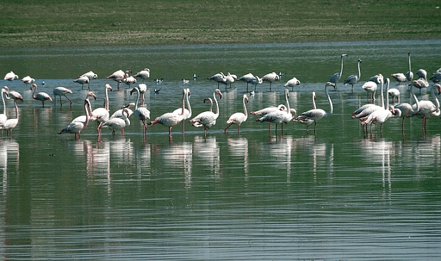 Baraj üzerinde adeta dans ederek görsel şov yapan flamingoların o anı doğaseverler tarafından fotoğraflanırken ortaya kartpostallık görüntüler çıktı. İlkbahar aylarında Gelingüllü Barajı’na akın eden yüzlerce flamingo burada belirli bir süre konakladıktan sonra koloniler halinde göç yollarına devam ediyor.