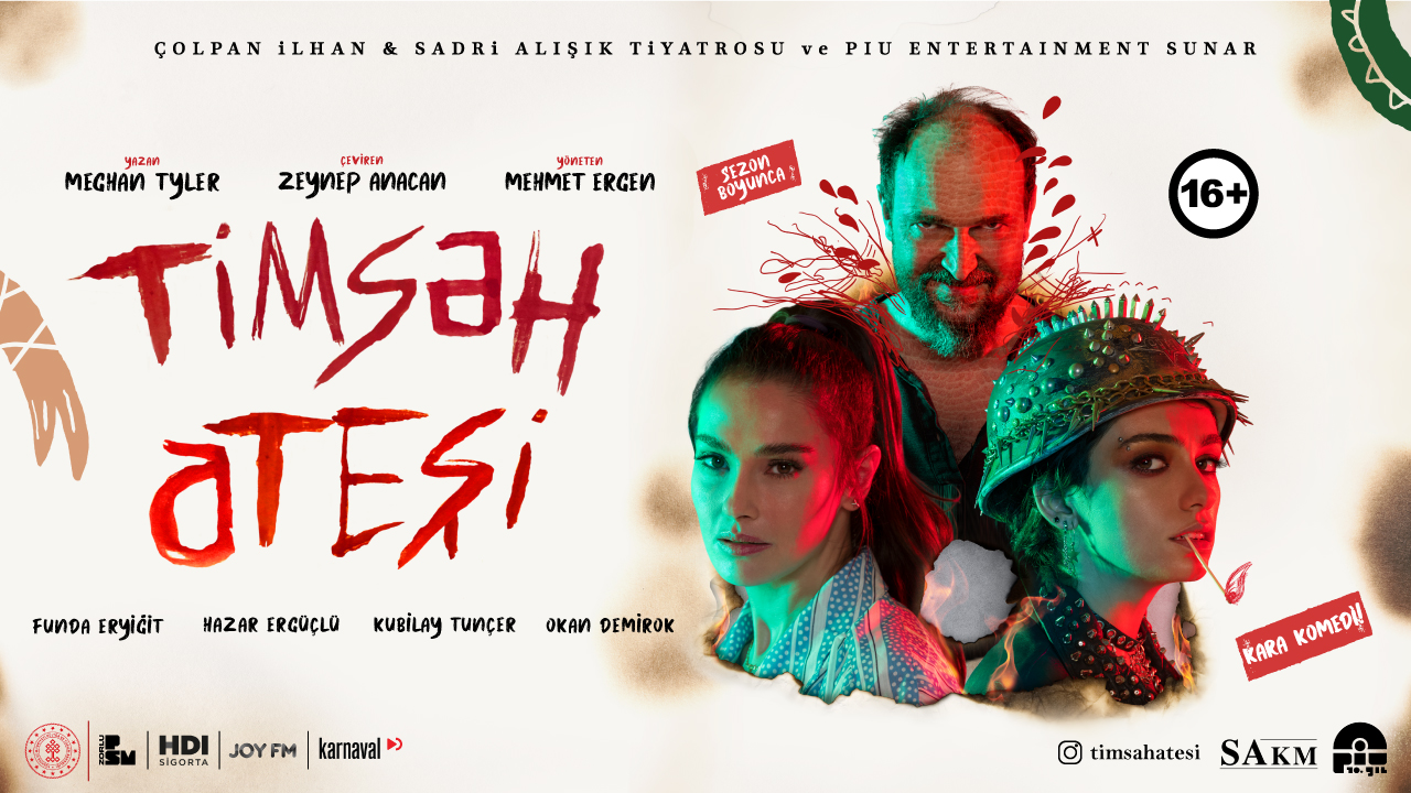 Başrollerini Funda Eryiğit, Hazar Ergüçlü ve Kubilay Tunçer’in paylaştığı Timsah Ateşi, zıt kutuplarda yaşayan iki kız kardeşin babalarıyla olan çalkantılı hikayesini konu alıyor. Yönetmenliğini Mehmet Ergen’in üstlendiği oyun, 2019 yılında Edinburgh Fringe Tiyatro Festivali’nin en iyi oyunları arasında yer aldı. 1989 yılı, Kuzey İrlanda… Sevgisiz bir evde, kötürüm bir baba ile 8 yıl hapis yatan asi bir kız Fianna (Hazar Ergüçlü) ve dindar ablası Alannah’ın (Funda Eryiğit) temposu bir an bile olsun düşmeyen, sürreal, grotesk hikayesi.